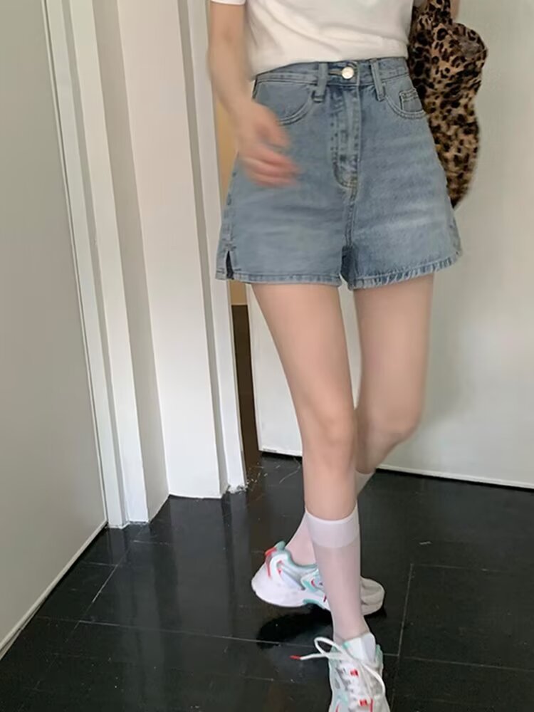 カジュアルで爽やかな印象を与えるレディースのデニムショートパンツです。 ハイウエストデザインで脚長効果が期待でき、スタイルアップが叶います。 裾にさりげないスリットが入っており、動きやすさと個性的なアクセントをプラス。 シンプルなトップスと合わせるだけで、こなれた夏のコーディネートが完成します。 普段使いはもちろん、休日のお出かけにもぴったりなショートパンツです。