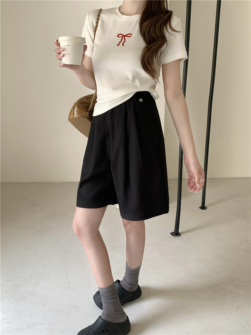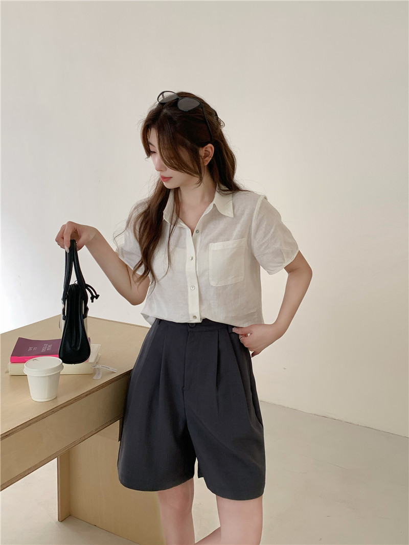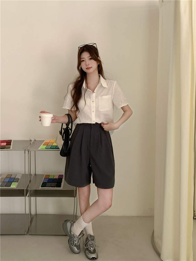 きちんと感を演出するセンタープレスが特徴のレディースショートパンツです。 深めのタック入りでゆったりとした履き心地ながら、すっきりとした印象を与えます。 ハイウエストデザインで脚長効果も期待でき、通勤からカジュアルまで幅広く活躍します。 白シャツとの相性も抜群で上品な着こなしが楽しめる一枚です。 ショートパンツながら膝上丈で程よい露出感がポイントです。